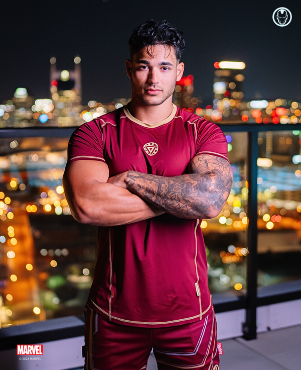 I AM IRON MAN! Introducing the official Iron Man activewear collection in partnership with Marvel. This collection embodies the sleek and futuristic design of his iconic armor, featuring the unmistakable arc reactor symbol and red/gold color scheme. Handcrafted with a premium 4-way stretch fabric blend, this collection is designed for those who want to train like a true tech-powered hero. Feel the innovation, confidence, and legacy of Iron Man with every move.